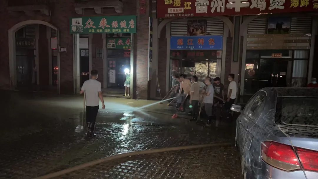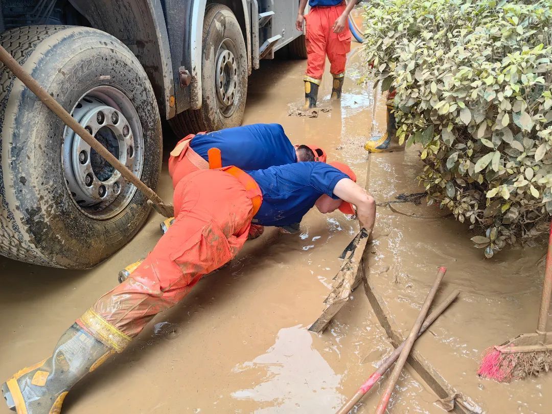 在清淤现场,志愿者们分工明确、默契配合,利用高压水枪、铁锹、清淤车等工具清洗道路淤泥,对堵塞的下水道进行疏通,确保排水畅通。